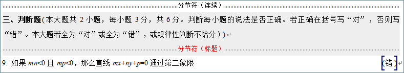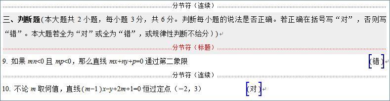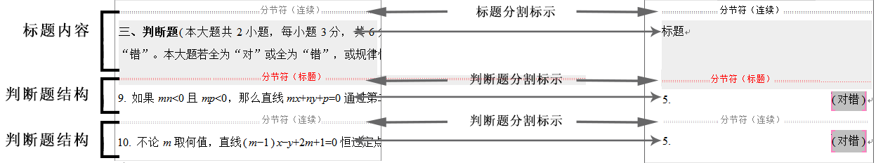 创建“判断题”下图是“判断题”大题结构对照,左边是试题,右边是题型结构。