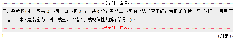 三、判断题(本大题共2小题,每小题3分,共6分。判断每小题的说法是否正确。若正确在括号写“对”,否则写“错”。本大题若全为“对”或全为“错”,或规律性判断不给分))。