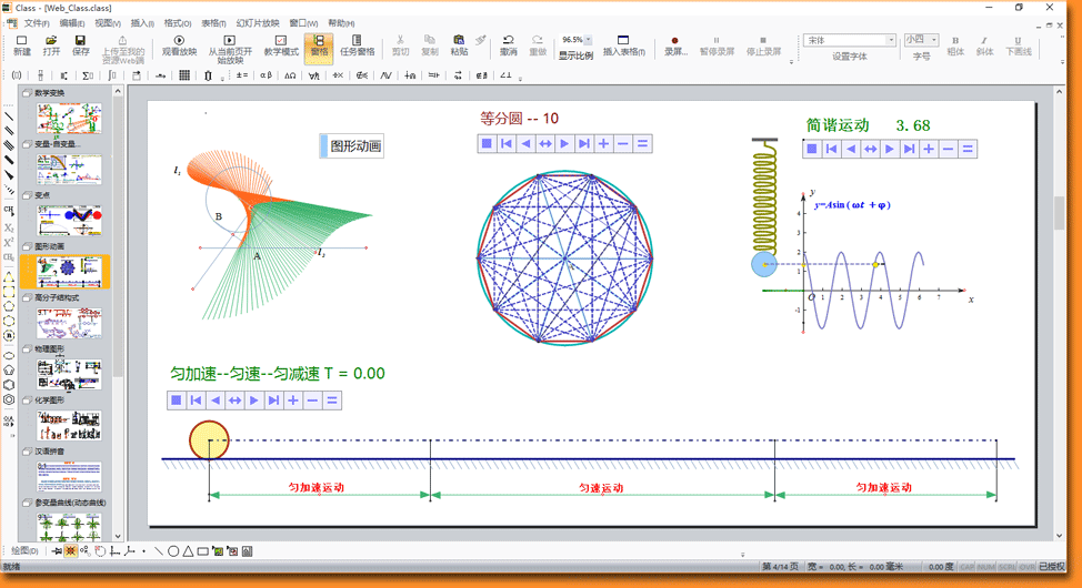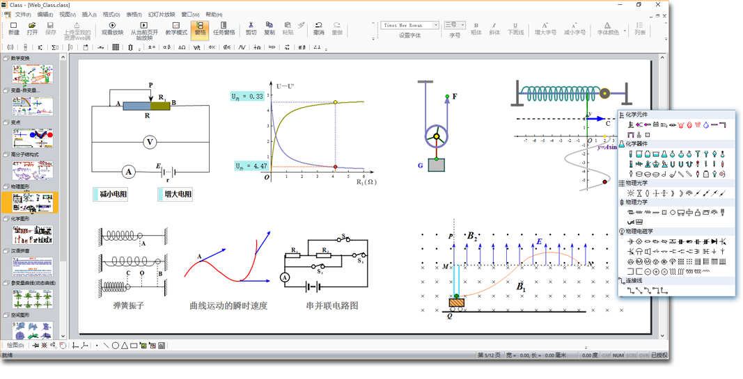 轻松创建物理教案,全面展现物理学科所涉及的文字、公式符号、曲线图、物理图形等,并以动画方式展示相关的物理原理,将抽象理论知识动态、直观的展现出来,与音频、视频、Flash等信息资源相得益彰。