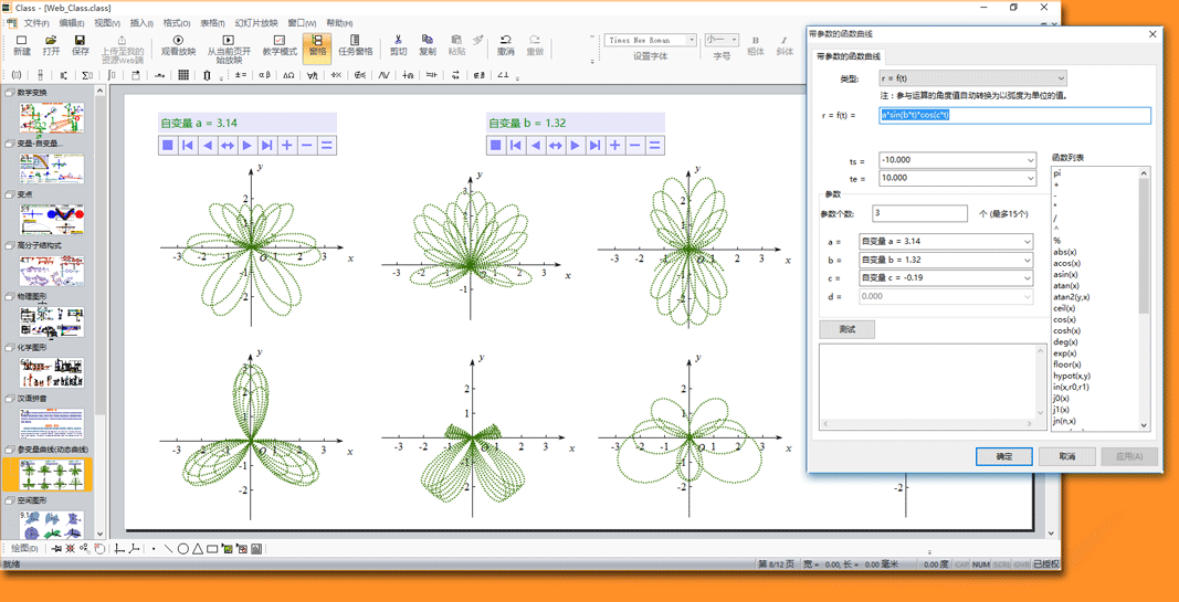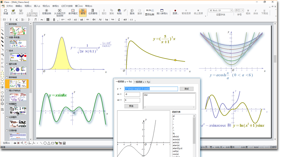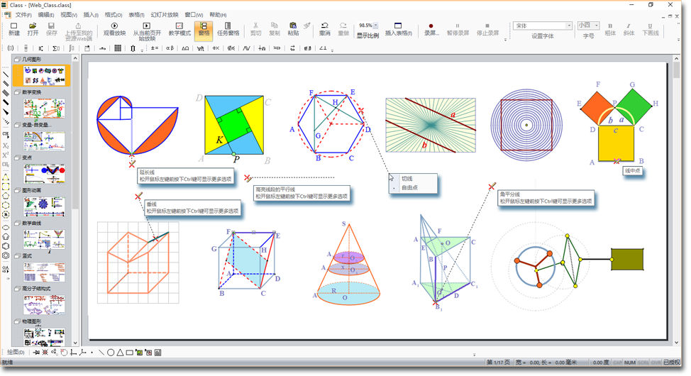轻松创建数学教案,将数学教案中文字、公式符号、几何图形、数学曲线等信息直观展现在文档中,并可以动画方式展现相关的数学几何原理,与音频、视频、Flash等信息资源融合。