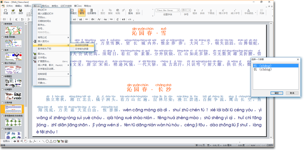 汉字上方自动注音,也可将汉字直接转换成拼音。注音过程中自动识别多音字。