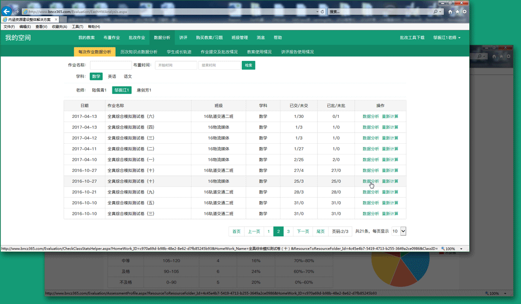 基于Web接口,实现在线作业批改,通过批改数据构建大数据云平台,自动生成数据分析报告,为老师教学、学生学习提供可信的数据参考,提高教学质量和学生成绩。