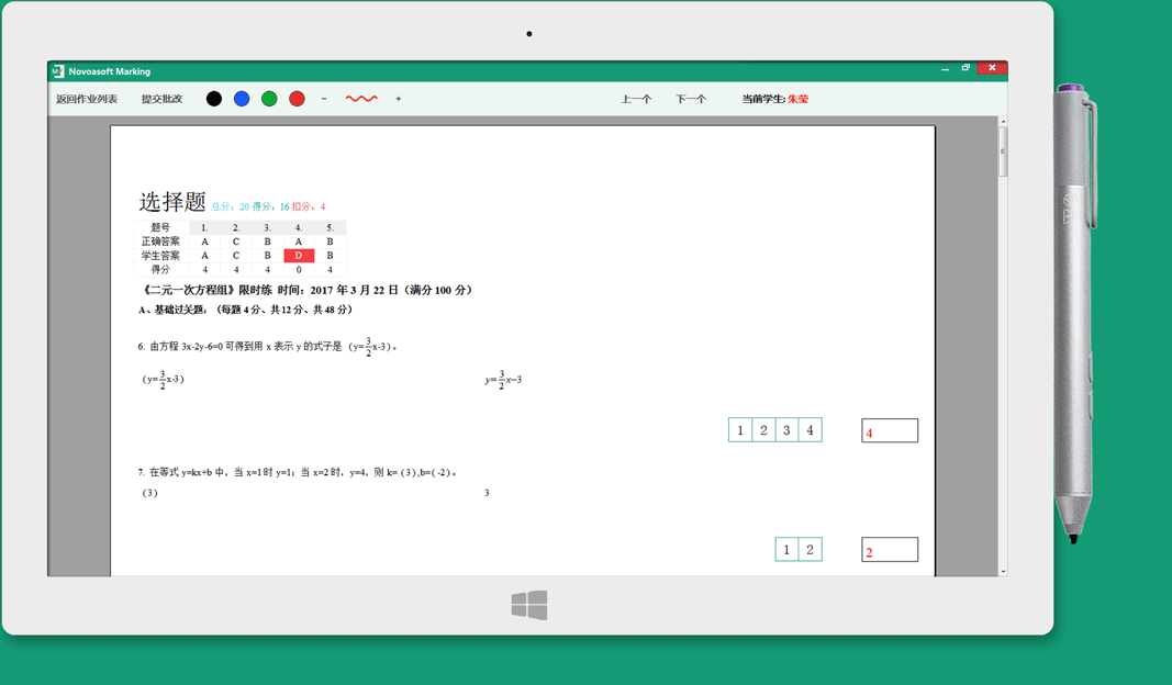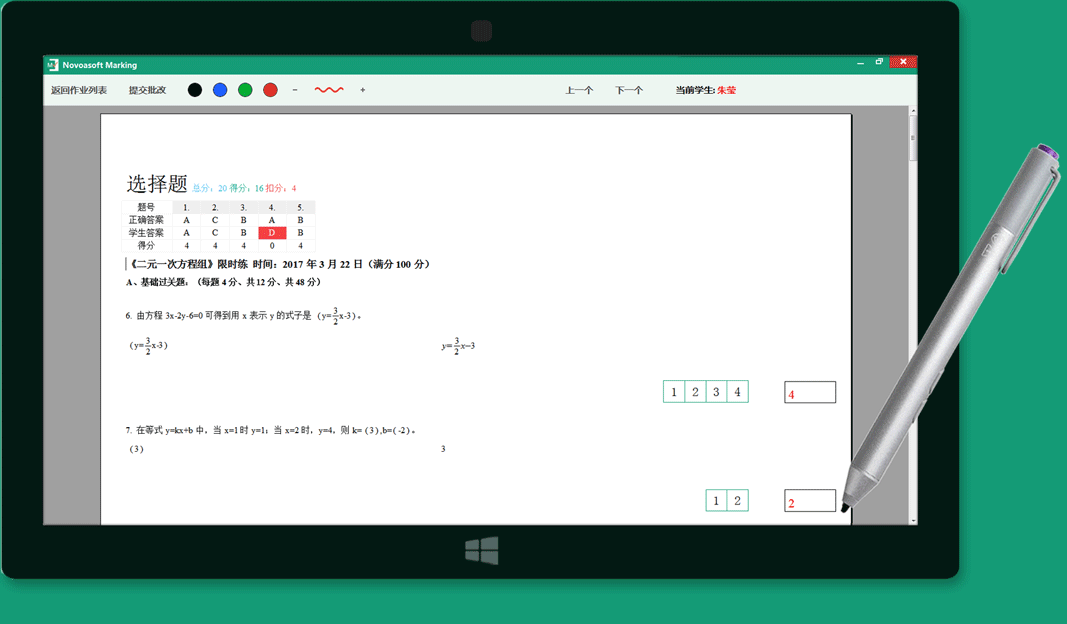 通过手写笔进行作业、试卷的批改和打分,圈写错误、书写评语,根据实际步骤打分,再现传统批改作业的场景,方便、快捷、高效。